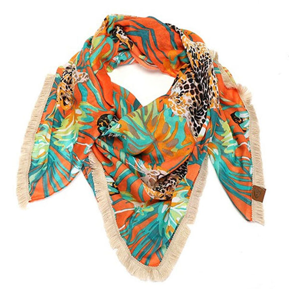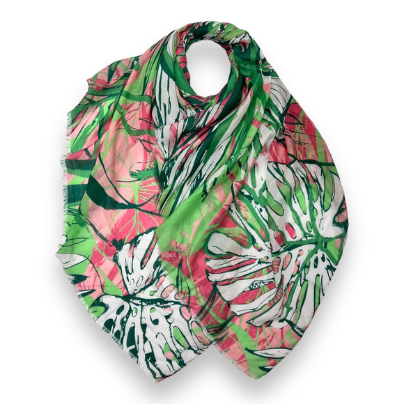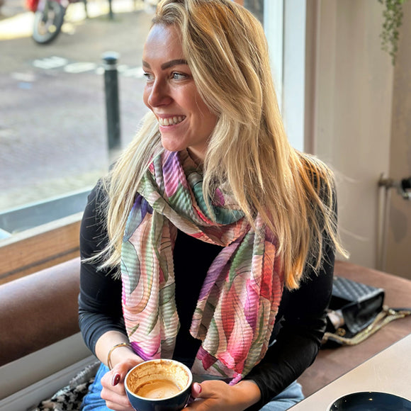 M&K Collection - Sjaal bladeren print - Roze/oranje