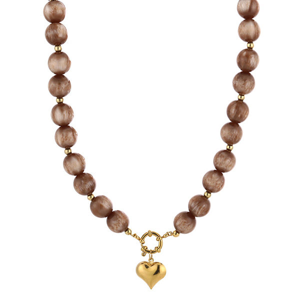By Have a Pico- Ketting kralen met hart - Bruin - Goud