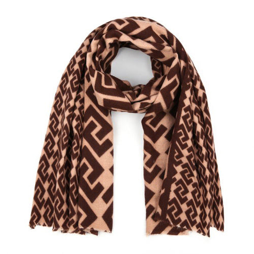 Zacht, warm en helemaal on-trend! Deze donkerbruine dames sjaal is dé must-have accessoire voor het herfst- en winterseizoen. De ruime sjaal is gemaakt van een comfortabele, hoogwaardige stof en valt op door de figuratieve print die direct je outfit naar een hoger niveau tilt.
