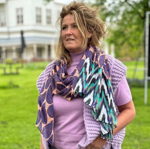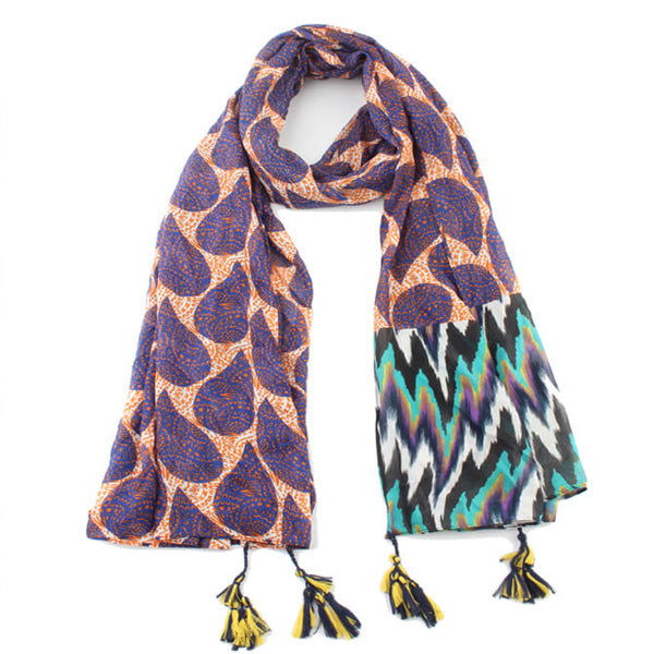 Leuke soepel vallende en speelse sjaal met een figuratieve print en afgewerkt met kwastjes. Door een combinatie van kleurtinten past deze sjaal vrijwel bij al jouw outfits.