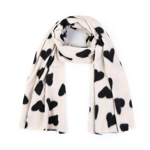Zacht, warm en helemaal on-trend! Deze sjaal met hartjesprint is dé must-have accessoire voor het herfst- en winterseizoen. De ruime, soepel vallende sjaal is gemaakt van een comfortabele, hoogwaardige stof die aanvoelt als wol, perfect voor frisse dagen.