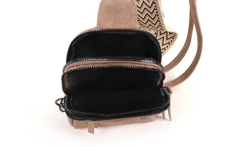 Het tasje beschikt over twee ruime hoofdvakken met ritssluiting, geschikt voor alle soorten mobiele telefoons en andere essentials. Aan de voorkant vind je bovendien een extra afsluitbaar vakje, zodat je belangrijke spullen altijd veilig bij de hand hebt.