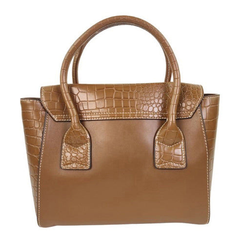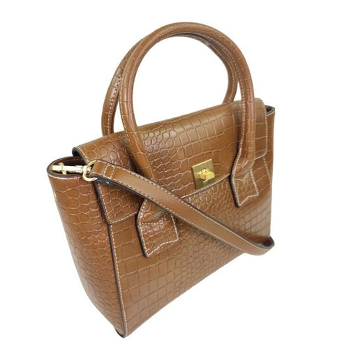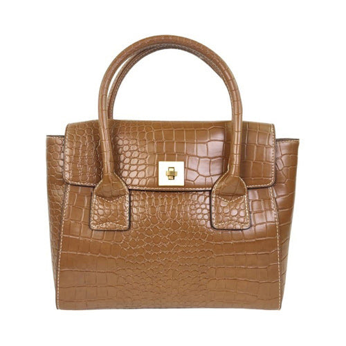 Stijlvolle handtas met subtiele print en goudkleurig draaislot.