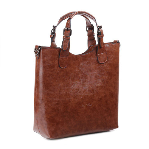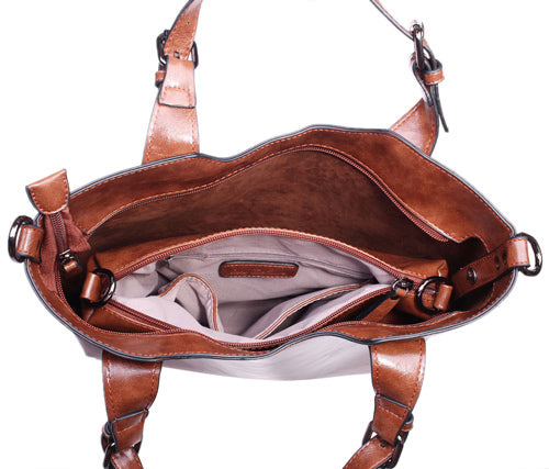 Deze classy leather-look tas is een echte musthave voor elke moderne vrouw. De tas is voorzien van mooie gespen op het hengsel en sluit veilig af met een ritssluiting. De binnenzijde heeft een ruim compartiment dat wordt gescheiden door een uitneembaar binnentasje, optimaal voor extra organisatie.