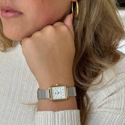 Dit mooie en elegante dameshorloge is een verfijnd horloge die perfect is voor de damespols. Met de mesh band is het een lust voor het oog en past het bij heel veel outfits door het witte uurwerk met een goudkleurige omlijsting. Het horlogebandje is makkelijk op de juiste maat in te stellen. Dit horloge is echt een plaatje voor aan je pols.