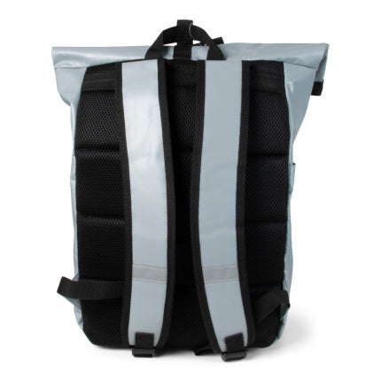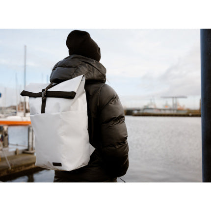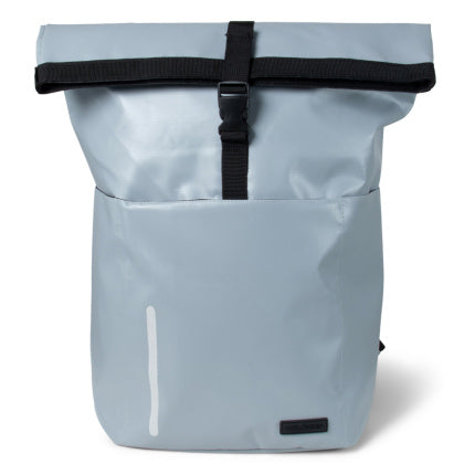 Rolrugtas, waterafstotend, stevig en opvallend in design. Deze rolrugtas is gemaakt van waterafstotend tarpaulin, een materiaal dat zorgt voor een stevige, duurzame en robuuste tas. Perfect voor dagelijks gebruik, fietsen of outdoor activiteiten. De oproldbare bovenzijde sluit veilig af met een buckle-sluiting, zodat je spullen goed beschermd blijven. Binnenin is er volop ruimte voor al je essentials, terwijl je extra items kunt opbergen in het voorvak met ritssluiting of in een van de twee zijvakken. Dankzij de verstelbare schouderbanden en de gewatteerde rugvoering draag je de tas comfortabel, zelfs wanneer hij goed gevuld is. De reflecterende streep aan de voorzijde zorgt bovendien voor extra zichtbaarheid in het donker. Ga goed voorbereid én stijlvol op pad, bij elk weertype!